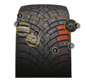 Также, за счет нового расположения шипов снижен уровень шума до значений близких к шумности нешипованных зимних шин, что значительно повышает комфорт при вождении.